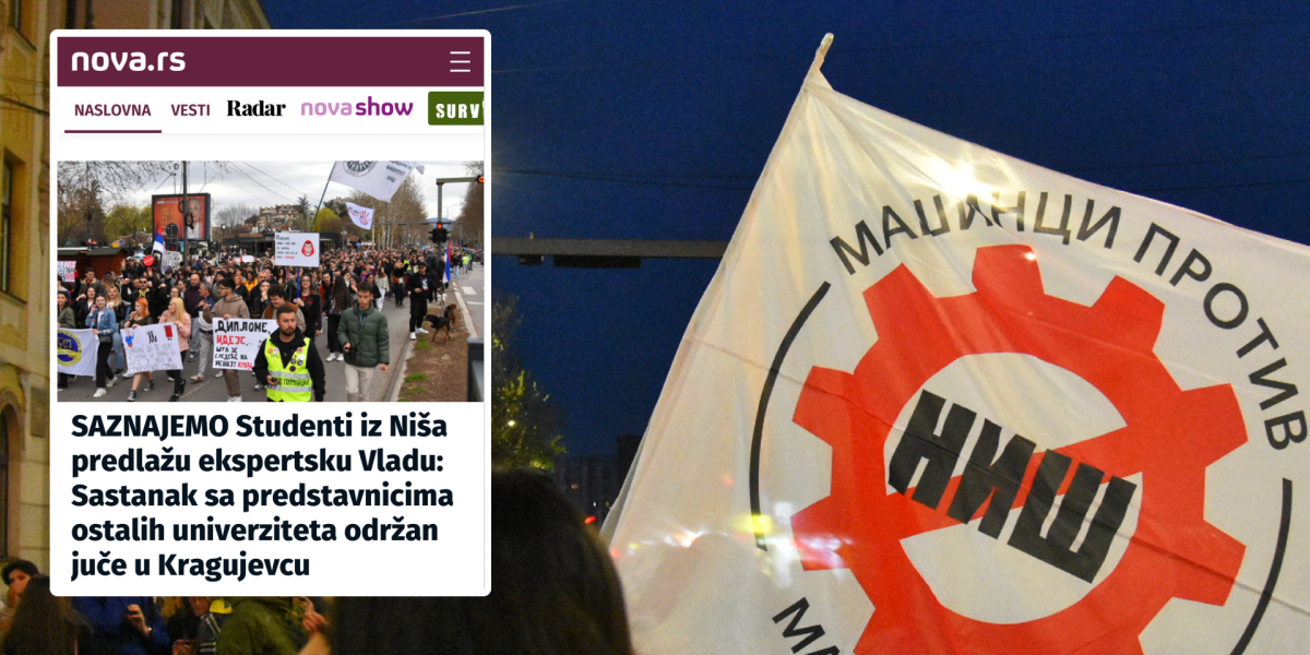 - Plenum studenata Univerziteta u Nišu, s izuzetkom Elektronskog fakulteta, izglasao je predlog ekspertske Vlade - navodi tajkunski portal Nova S.