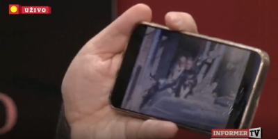 Vučićević je u uživo programu pokazao fotografiju dekana Filozofskog fakulteta u Beogradu Danijela Sinanija koji na motoru došao do prostorija "Kobra filma".