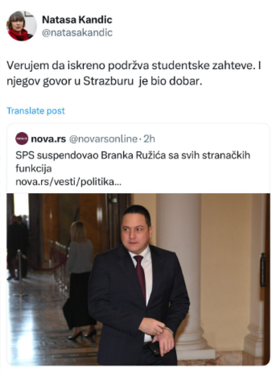 Podsećamo, Branko Ružić, dugogodišnji funkcioner socijalista i ministar u nekoliko vlada, poslednjih nedelja javno je istupao sa stravovima koji su išli u korist opozicije.