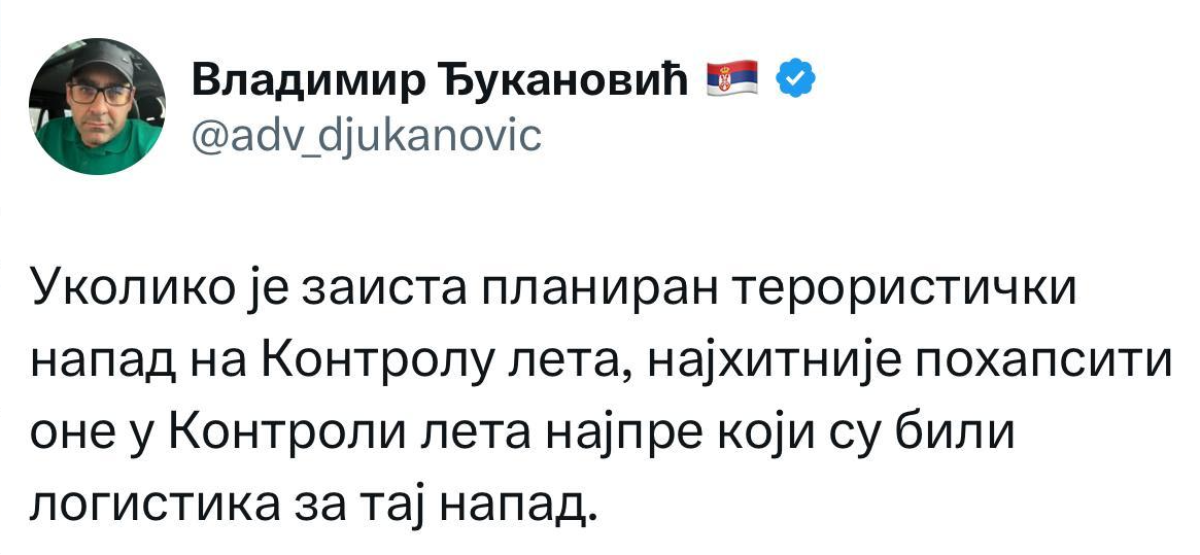 Advokat i narodni poslanik Vladimir Đukanović poručio je da treba hitno pohapsiti ljude zaposlene u Kontroli letenja.