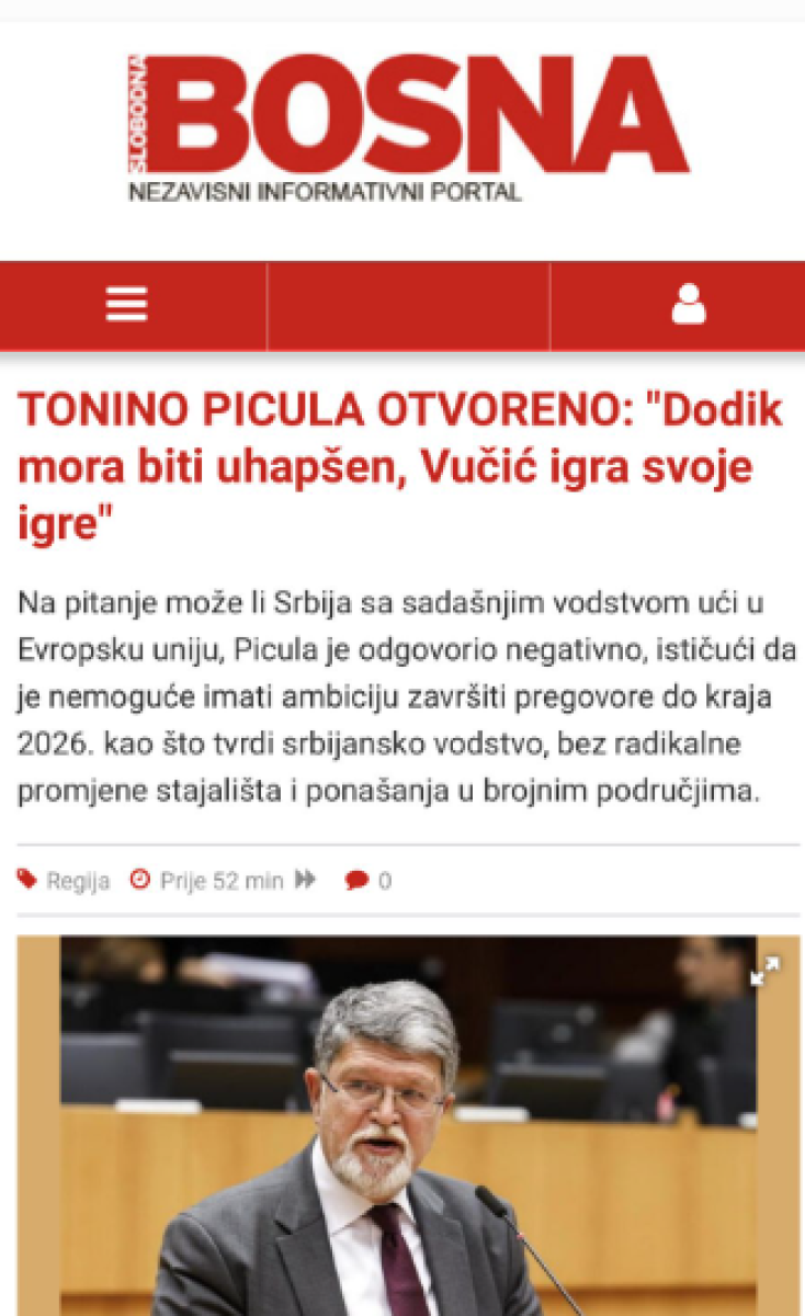"Postoje četiri stuba srpske spoljne politike - Evropska unija, SAD, Rusija i Kina i mislim da nije moguće stalno sedeti na četiri stolice. Mislim da mi ne delimo vrednosti i geopolitičke ciljeve s Kinom i Rusijom u većini područja, a sve manje i sa SAD-om", rekao je Picula.