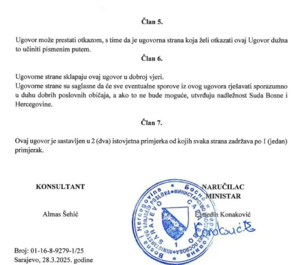 Interesantno je to da se u ugovoru do kojeg smo došli navodi da konsultantske usluge neće koštati ništa, s obzirom na to da je navedeno da će konsultant raditi bez naknade.