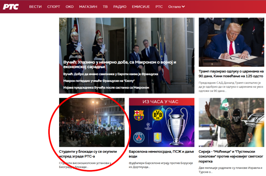 U Trećem dnevniku na RTS objavljen je demanti informacije zbog koje su se blokaderi okupili ispred zgrade javnog servisa.