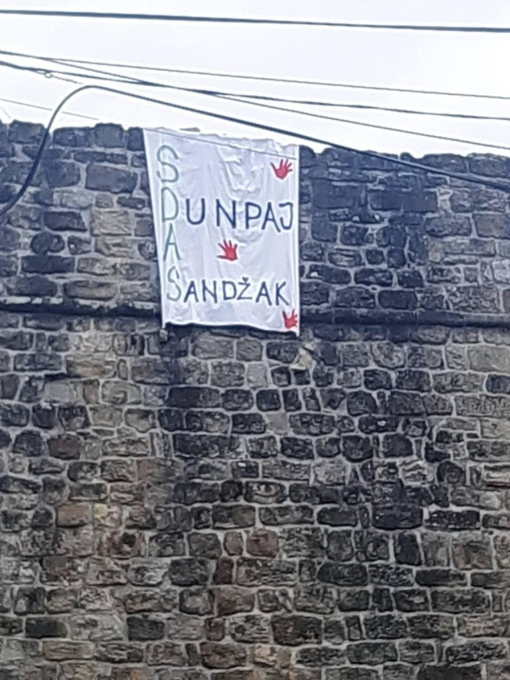 "Pumpaj autonomiju. SDA Sandžaka. Suljo-Naser-Alija", napisano je na jednom od njih.