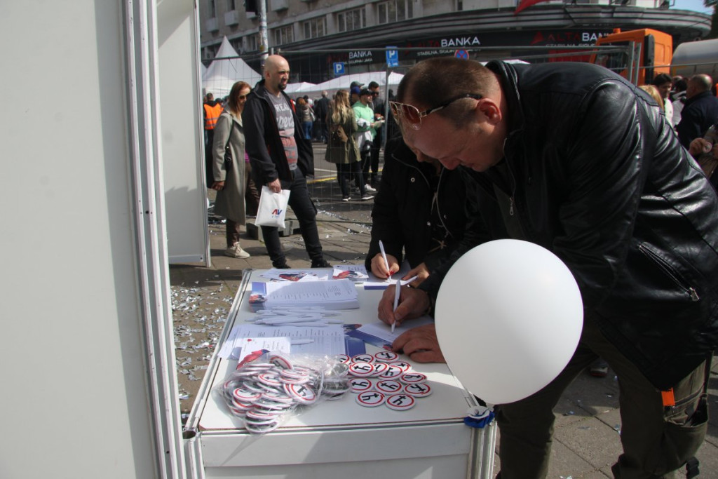 Na Trgu Nikole Pašića i duž Bulevara Kralja Aleksandra postavljeni su štandovi, među kojima je i veliki štand na kojem građani mogu da se učlane u svenarodni pokret, da izaberu ime pokreta, ali i da daju svoj predlog za ime pokreta.
