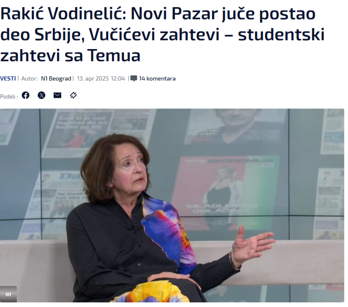 - Neki zahtevi, da nije dao primere, bi bili zahtevi koje bih ja sama potpisala, na primer, kada je rekao da svi nadležni državni organi treba da kazne one koji su vandalski napali ljude koji mirno protestuju. On je tu naveo kao primer slučaj sa Nišom i gađanjem jajima - rekla je Rakić Vodinelić i samim tim faktički poručila da nije u redu gađati ljude jajima, ali da je, s druge strane, sasvim legitimno maltretirati članove Srpske napredne stranke u Nišu.