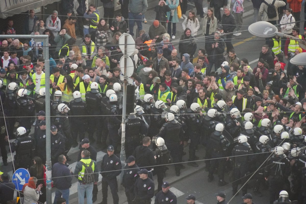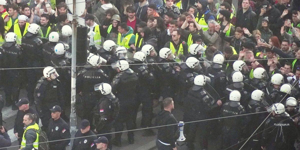 Nakon toga učesnici protesta su se na nova upozorenja pomerili i policija je vozilima napustila lice mesta.