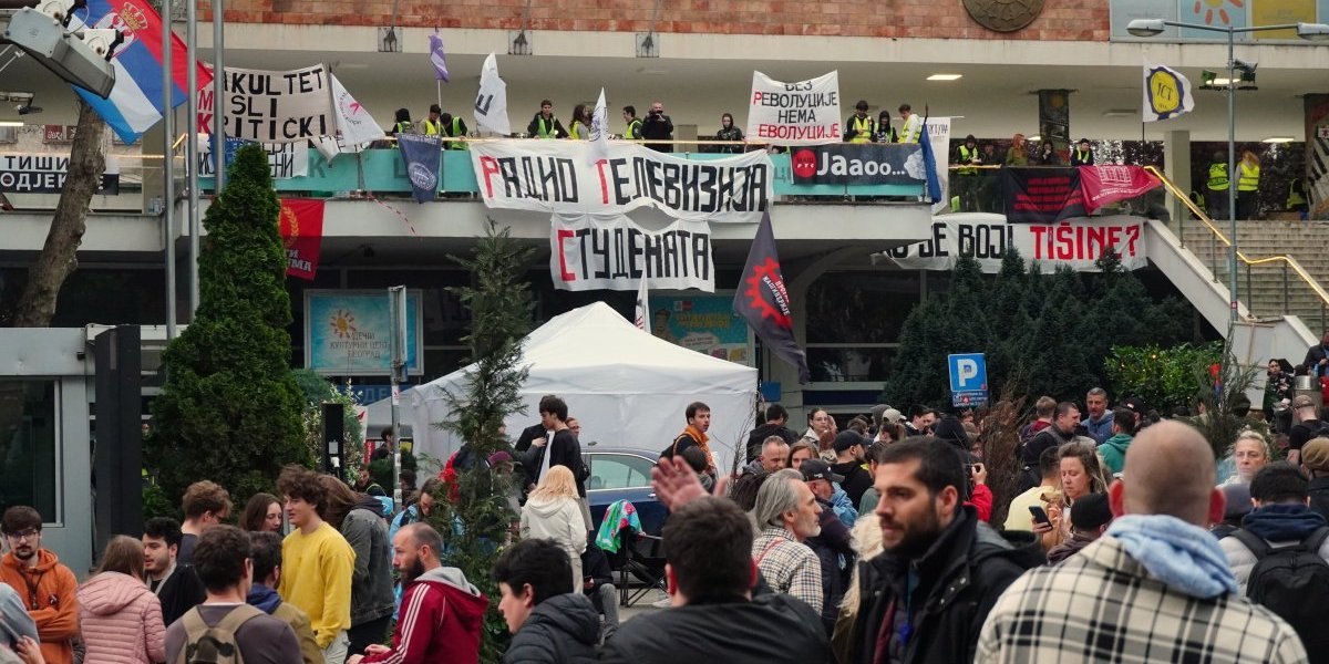 Blokada zgrada Radio-televizije Srbije traje gotovo 60 sati. Okupljeni i dalje blokiraju sva tri ulaza u Takovskoj i Aberdarevoj ulici, kao i prilaze ka zgradi RTS na Košutnjaku.