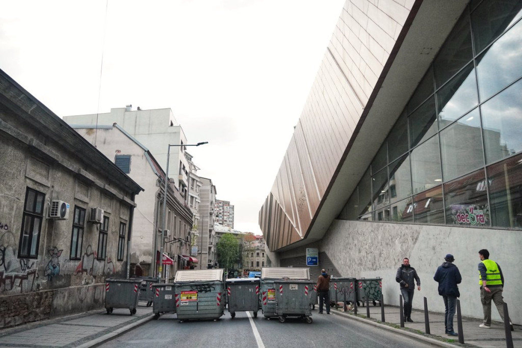 Za razliku od prethodnih dana kada su Takovsku i Ulicu Ilije Garašanina blokirali okupljeni danas su postavljene metalne ograde i kontejneri zbog kojih je na raskrsnici ulica Ilije Garašanina, Takovske i Svetogorske obustavljen saobraćaj.