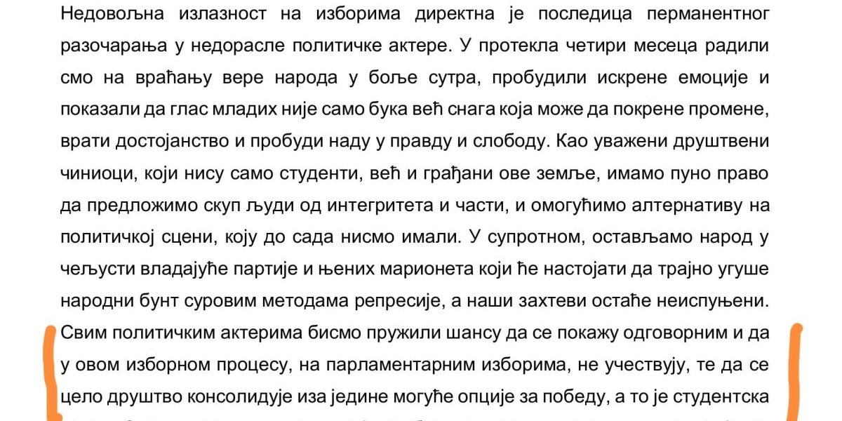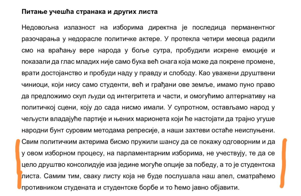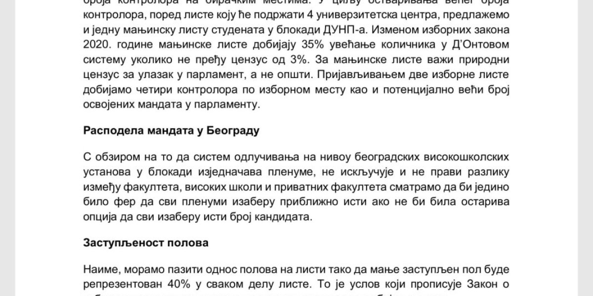 Informer je došao do dokumenta koji su sastavili blokaderi plenumaši sa Pravnog fakulteta u Beogradu, a koji se tiče izbora, izborne liste i sličnih stvari.