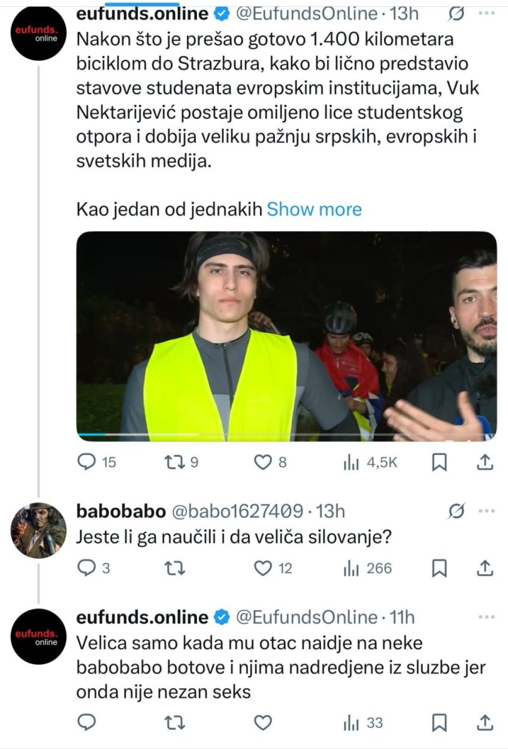 Pri tom, reč je o studentu blokaderu za koga tajkunski mediji dižu u zvezde. To je otišlo toliko daleko da je Nektarijević čak davao izjave i za britanski "Gardijan".