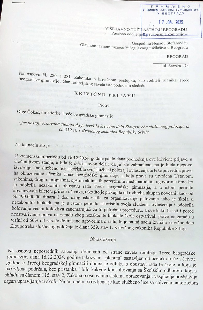 Treća gimnazija u Beogradu, koja je u blokadi, organizuje maturski bal.
