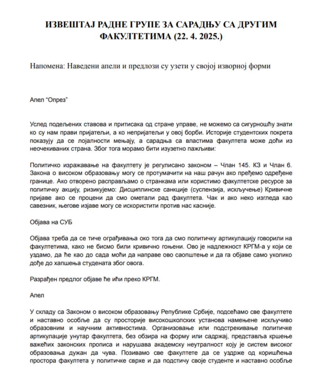 Iz tajnog spisa koji su nam dostavili učesnici sastanka, a koji je nastao na Pravnom fakultetu u Beogradu i više je nego jasno da su blokaderi svesni da čine ozbiljna krivična dela pretvarajući fakultete u baze za političko delovanje.
