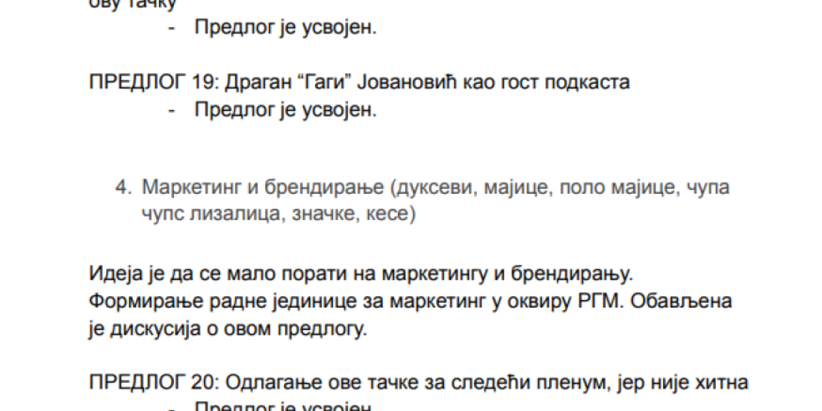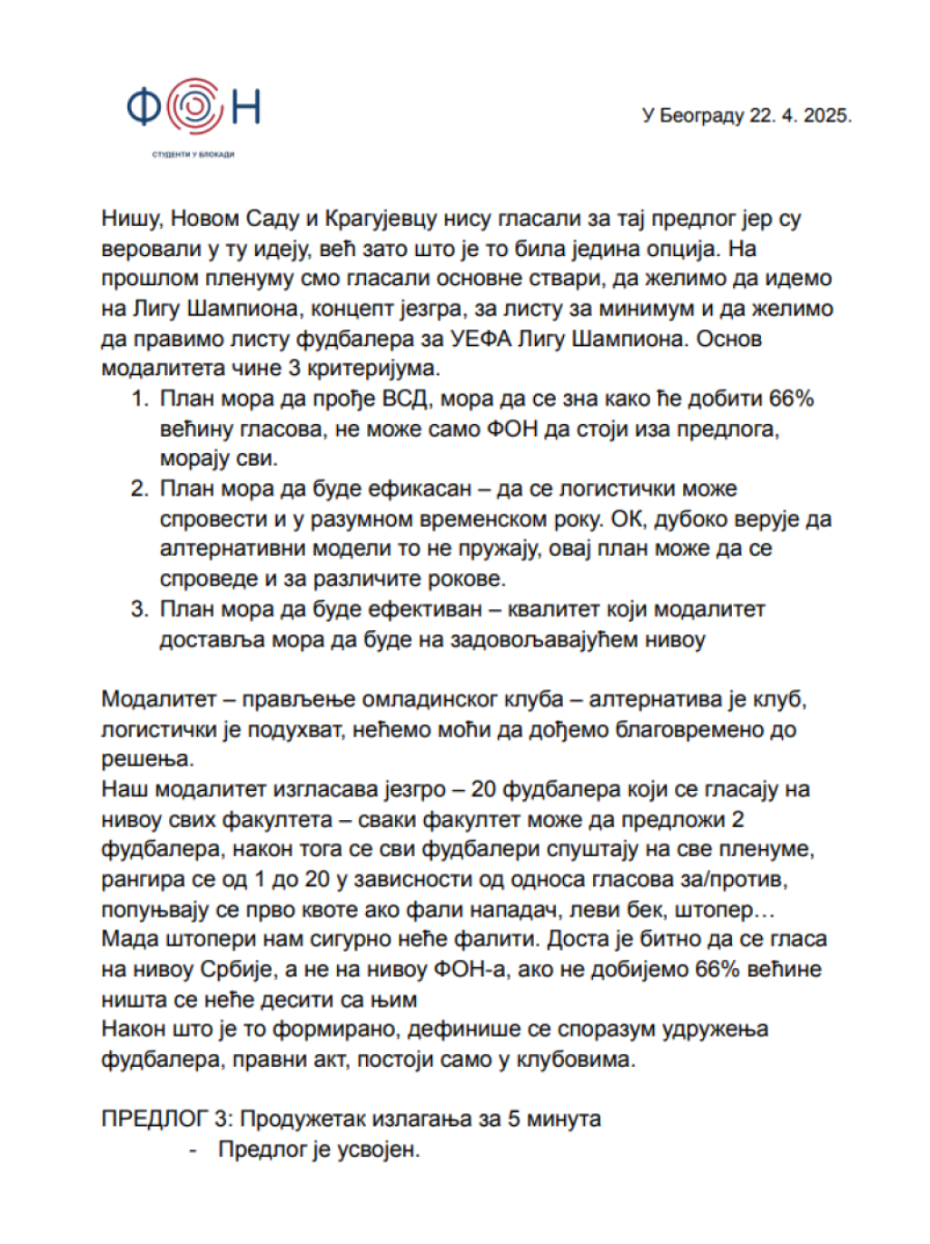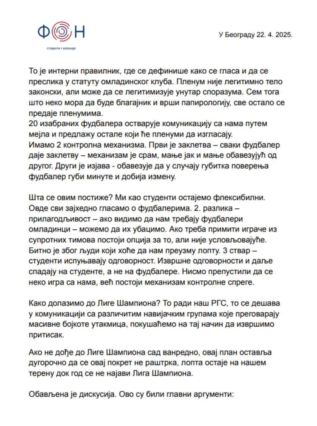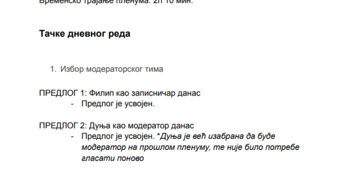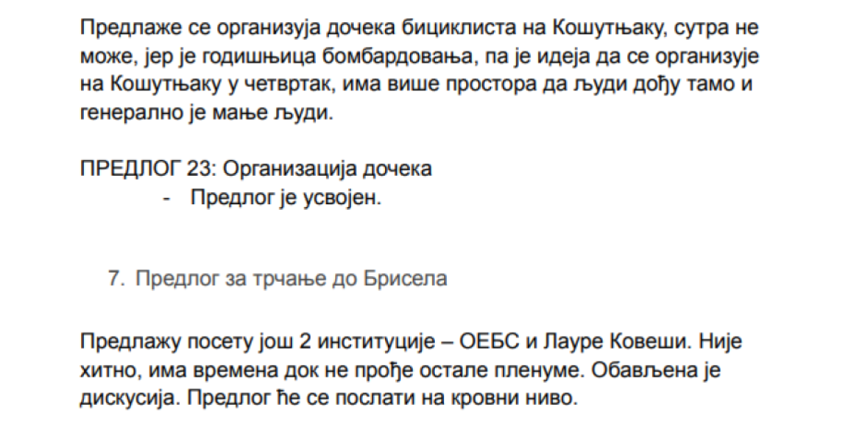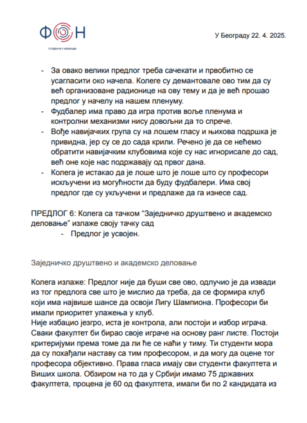 Plenum je održan 22. aprila, a ceo dokument obiluje šiframa koje blokaderi koriste kako bi se zaštitili od pravnih posledica.