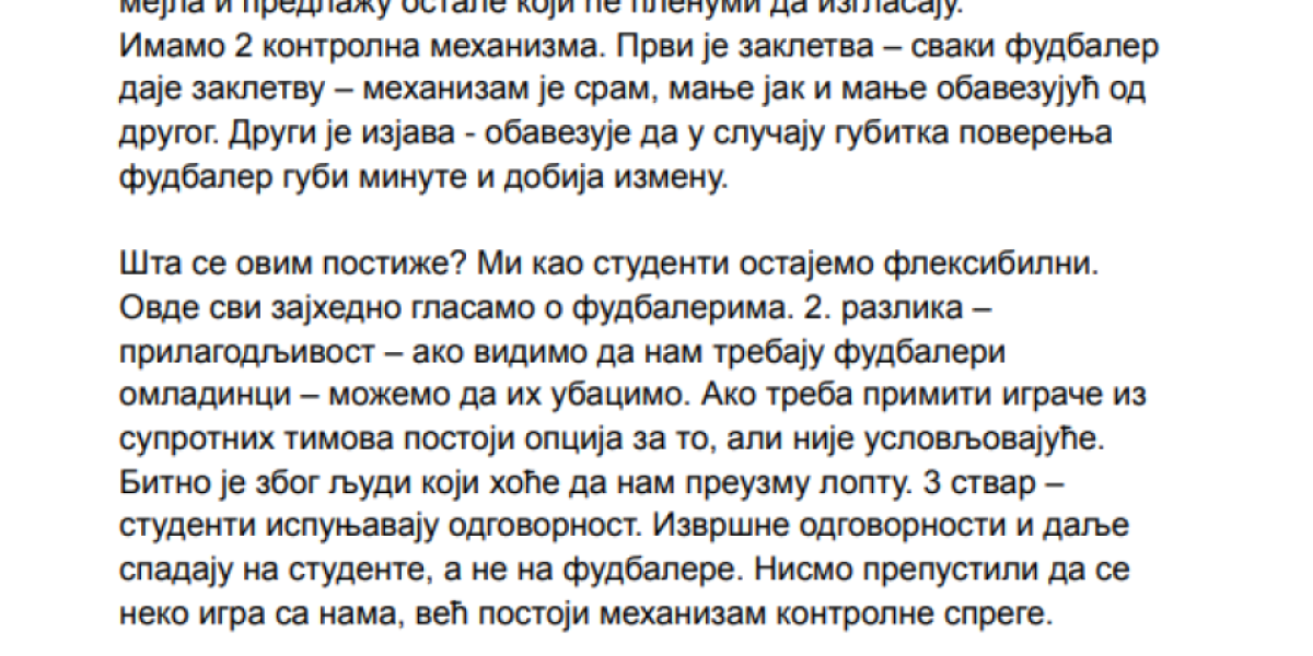 Tako plenumaši sa FON umesto o politici pričaju o fudbalu. "Izborni komitet" je "fudbalski klub", a "izbori" - "liga šampiona"...