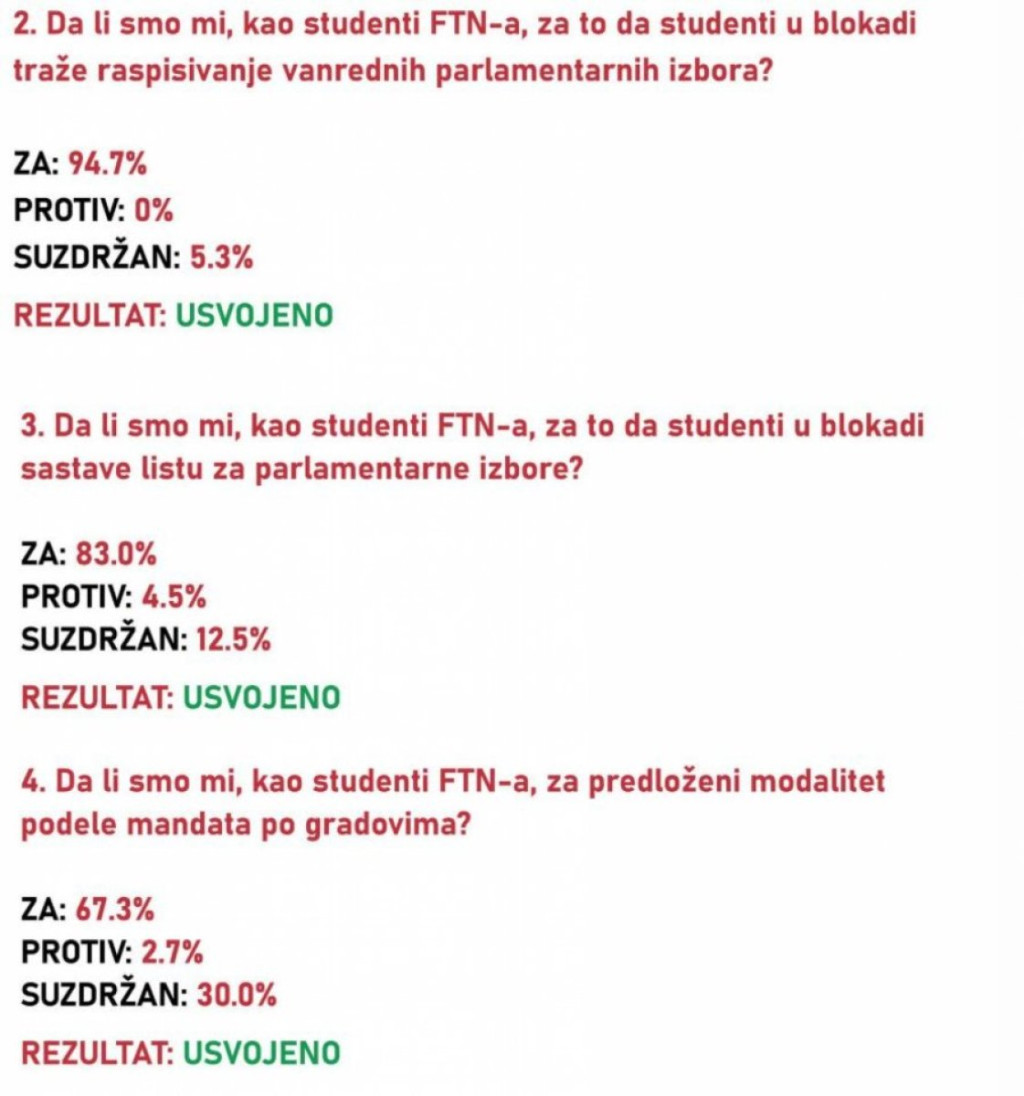 Pod tačkom dva, kako su objavili, usvoji su zahtev kojim se traži raspisivanje vanrednih parlamentarnih izbora.