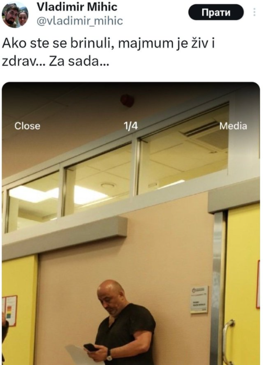 Naime, Mihić je na Tviteru napisao "ako ste se brinuli, majmun je živ i zdrav, za sada".