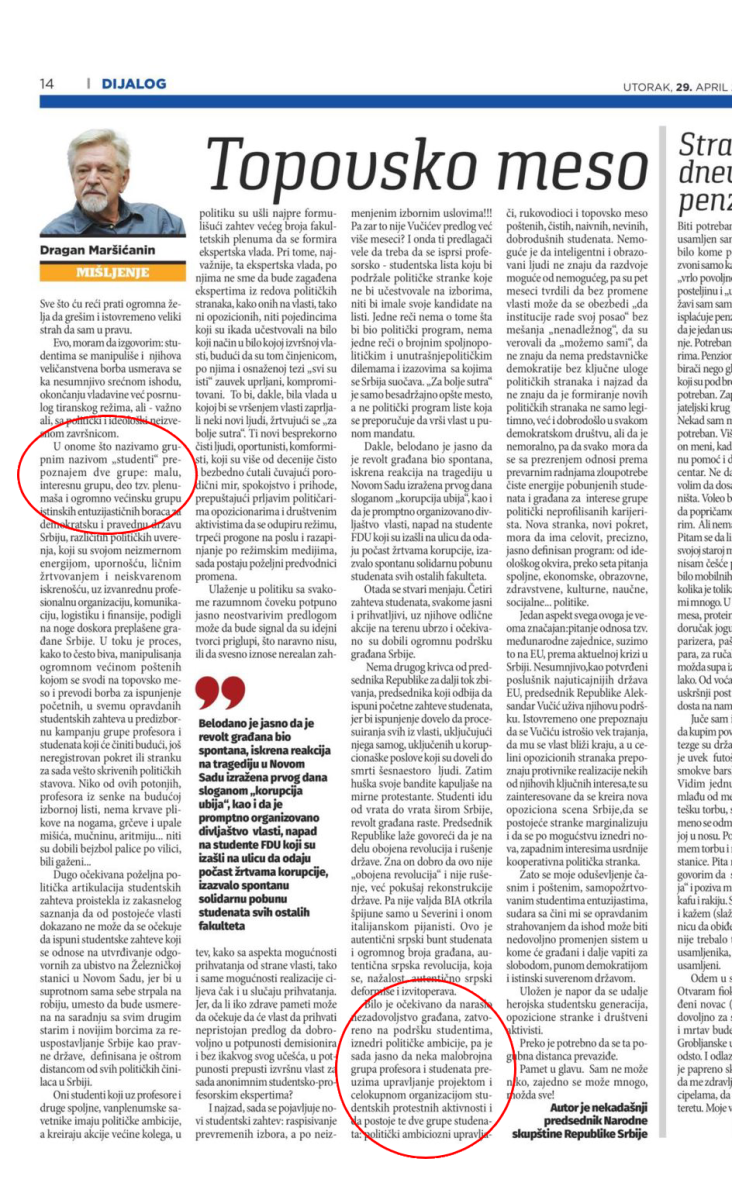 Poslednji u nizu koji je napao studente blokadere je član predsedništva Novog DSS Dragan Maršićanin.