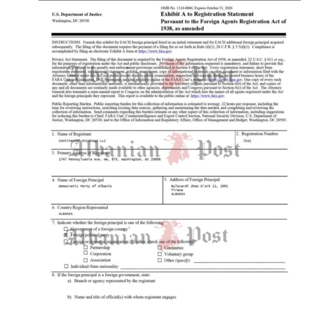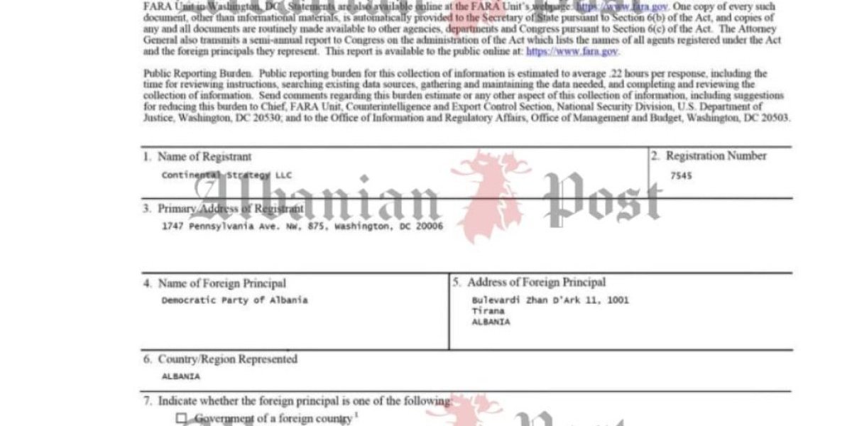 Ovaj dokument, koji su objavili mediji u Tirani, registrovan je u skladu sa američkim Zakonom o registraciji stranih agenata (FARA).