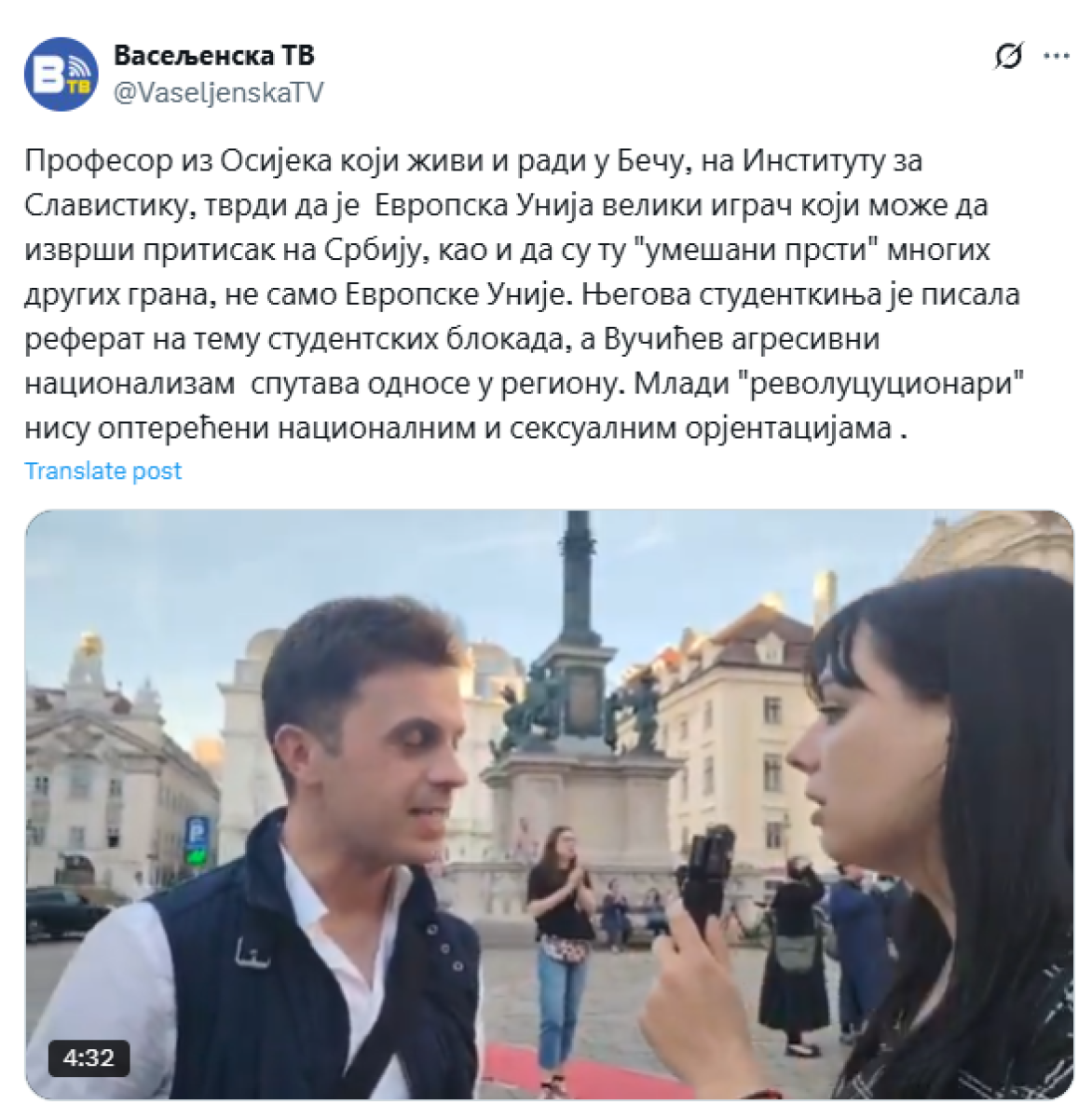 Posebnu pažnju privlači i podatak da je jedna od njegovih studentkinja upravo nedavno pisala referat na temu studentskih blokada u Srbiji, što pokazuje koliko se te teme već uveliko obrađuju u akademskim krugovima van zemlje, sa jasnom političkom pozadinom. Prema rečima profesora Rončevića, „Vučićev agresivni nacionalizam“ stoji na putu „savremenih odnosa u regionu“, dok su mladi koji dolaze na proteste opisani kao „revolucionari bez opterećenja nacionalnim ili seksualnim identitetima“.