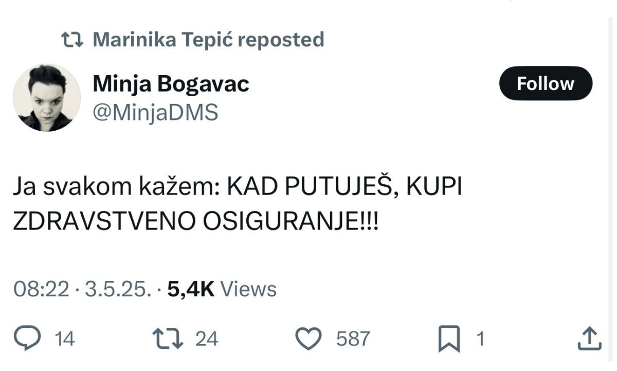 — Vlajna sam,pa šta!? (@vlajnamala) May 3, 2025