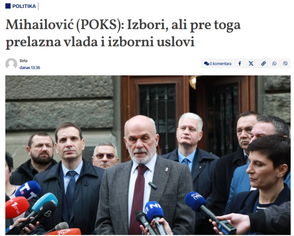 I Jovanovićev saborac iz koalicije NADA, predsednik POKS Vojislav Mihailović u istom tonu je govorio o vanrednim parlamentarnim izborima.