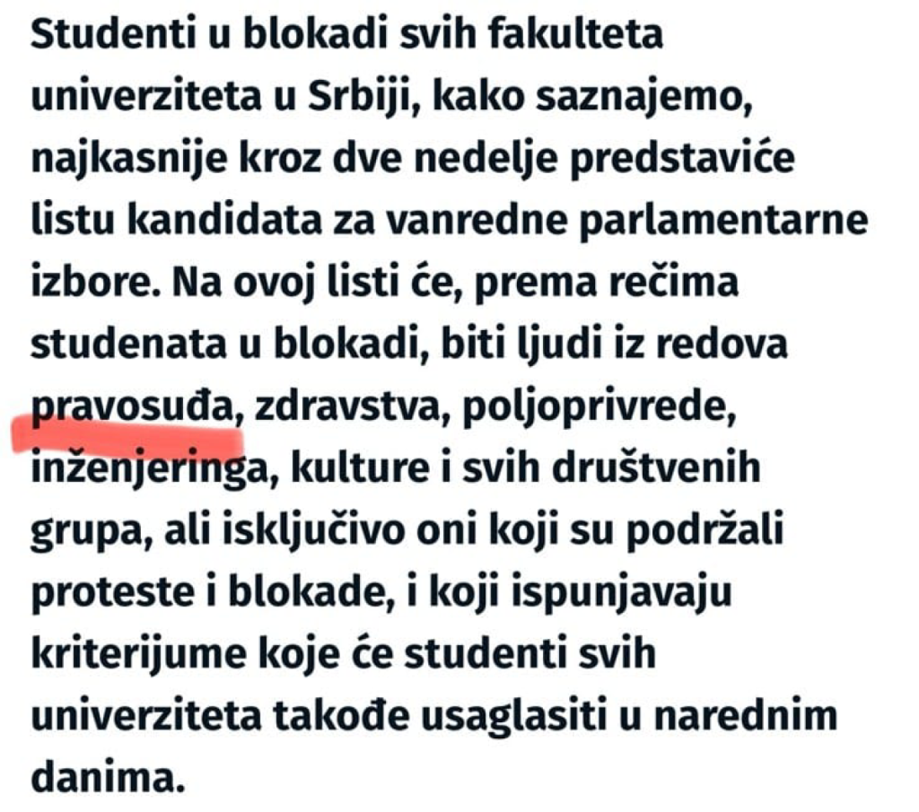 Koliko oni ništa ne razumeju o političkom sistemu i savremoj demokratiji svedoči i to što za takozvanu studentsku listu spremaju i kandidate iz pravosuđa (?!).