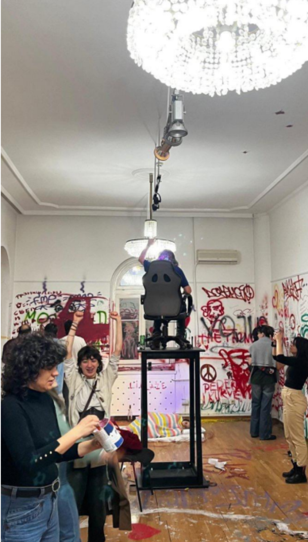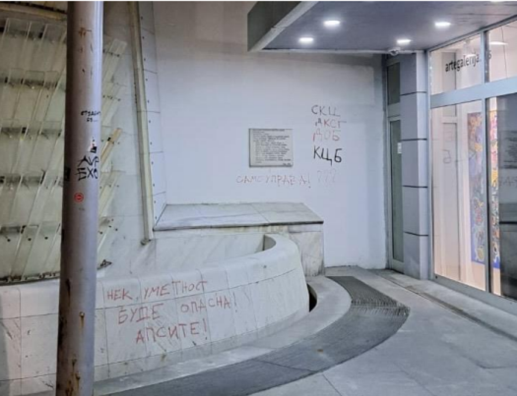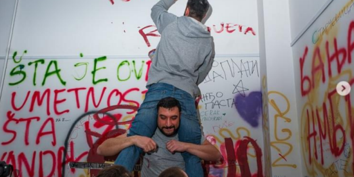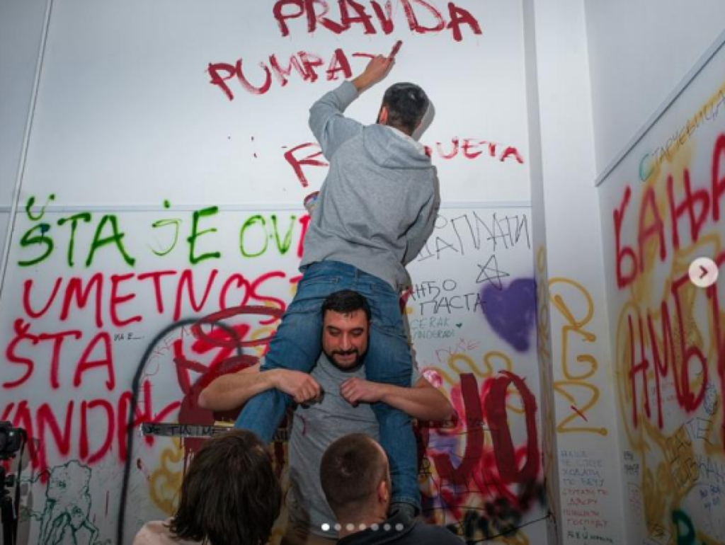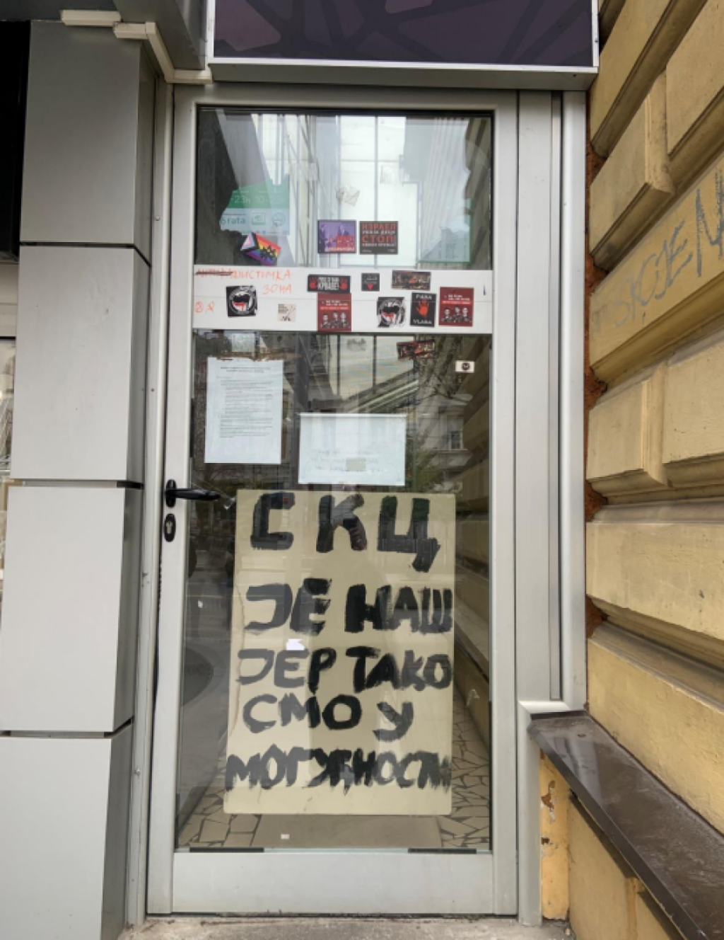 - Na nezakonit način SKC je blokiran, odnosno zauzet, protiv zakona u februaru ove godine. Od tada svašta se dešava u SKC-u, ali ono zbog čega sam osećala obavezu da se obratim je činjenica da je u aprilu u SKC u blokadi, organizovana izložba, a kako bi ušli na tu izložbu, ispred je bačena pocepana, okrnjena srpska zastava, i sa tom zastavom je svaki posetilac morao da obriše obuću kako bi ušao na izložbu - rekla je Brnabić i priložila fotografiju.
