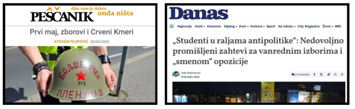 Da su studenti i opozicija podeljeni dokazuje novinar Vojin Radovanović, 07.05.2025. u tekstu u listu „Danas“, pod nazivom: „Studenti u raljama antipolitike“:Nedovoljno promišljeni zahtevi za vanrednim izborima i „smenom“ opozicije“. U tom tekstu Radovanović kaže: „Studenti u blokadi traže vanredne parlamentarne izbore. Potez koji, može se pokazati nedovoljno promišljenim. Kaže se da studenti direktno neće ići na izbore, mada se i dalje čuju glasovi sa beogradskog Pravnog fakulteta koji govore da će studentske liste biti (...) Zahtevi studenata su u više od devedeset odsto ispunjeni (...) pitanje je da li je studenti uopšte trebalo da uđu na ovaj teren, da traže izbore nakon što je prošao pik protesta. Kada se na sve ovo doda emocija da su studenti „smenili“ opoziciju, da ona nije potrebna kao izborni akter, jasno je da se srpska opoziciona misao vratila antipolitici (...) neka onda opoziciona javnost, pa i deo opozicionara, prihvati bar da se opozicione stranke ne mogu povući i ne učestvovati na tim izborima iz brojnih razloga“. Ovi stavovi koje prenosi opozicioni novinar, pokazuju svu šizofreniju odnosa unutar studenata blokadera, unutar opozicije i međusobnog klinča studenata blokadera i opozicije.