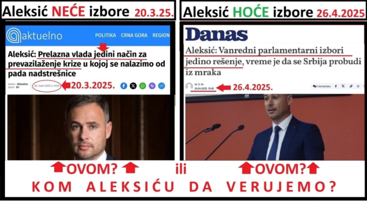 Kom Aleksiću da verujemo? Onom od 20.3.2025. ili onom od 26.4.2025.?