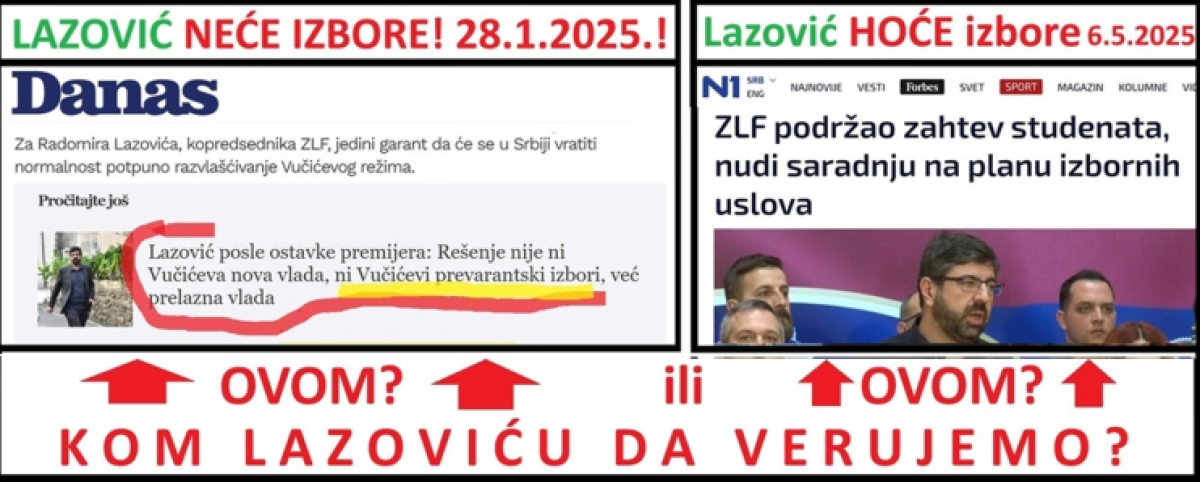 Kom Lazoviću da verujemo? Onom od 28.1.2025. ili onom od 6.5.2025.?
