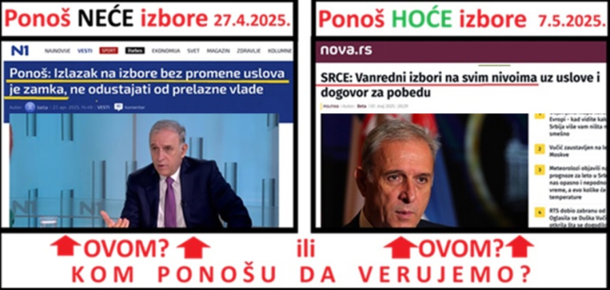 Zdravko Ponoš i SC su 7.5.2025. izneli sasvim suprotan stav, onom stavu koji su zastupali 5 meseci.