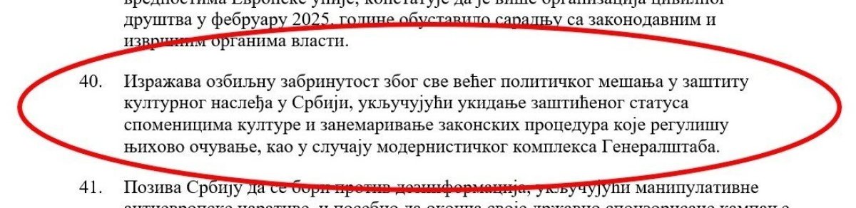Navodno, izražavaju ozbiljnu zabrinutost zbog sve većeg političkog mešanja u zaštitu nasleđa u Srbiji, uključujući uklanjanje zaštićenog statusa sa spomenika kulture i nepoštovanje zakonskih procedura koje regulišu njihovo očuvanje, kao u slučaju modernističkog kompleksa Generalštaba koji su upravo oni bombardovali.
