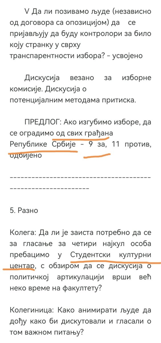 Na istoj sednici odlučili su da kandidate za poslanike biraju u Studentskom kulturnom centru (SKC), jer se plaše tužbi ako bi se pojavili na fakultetu! Umesto da se bave učenjem, oni se bave tužbama i političkim planovima.