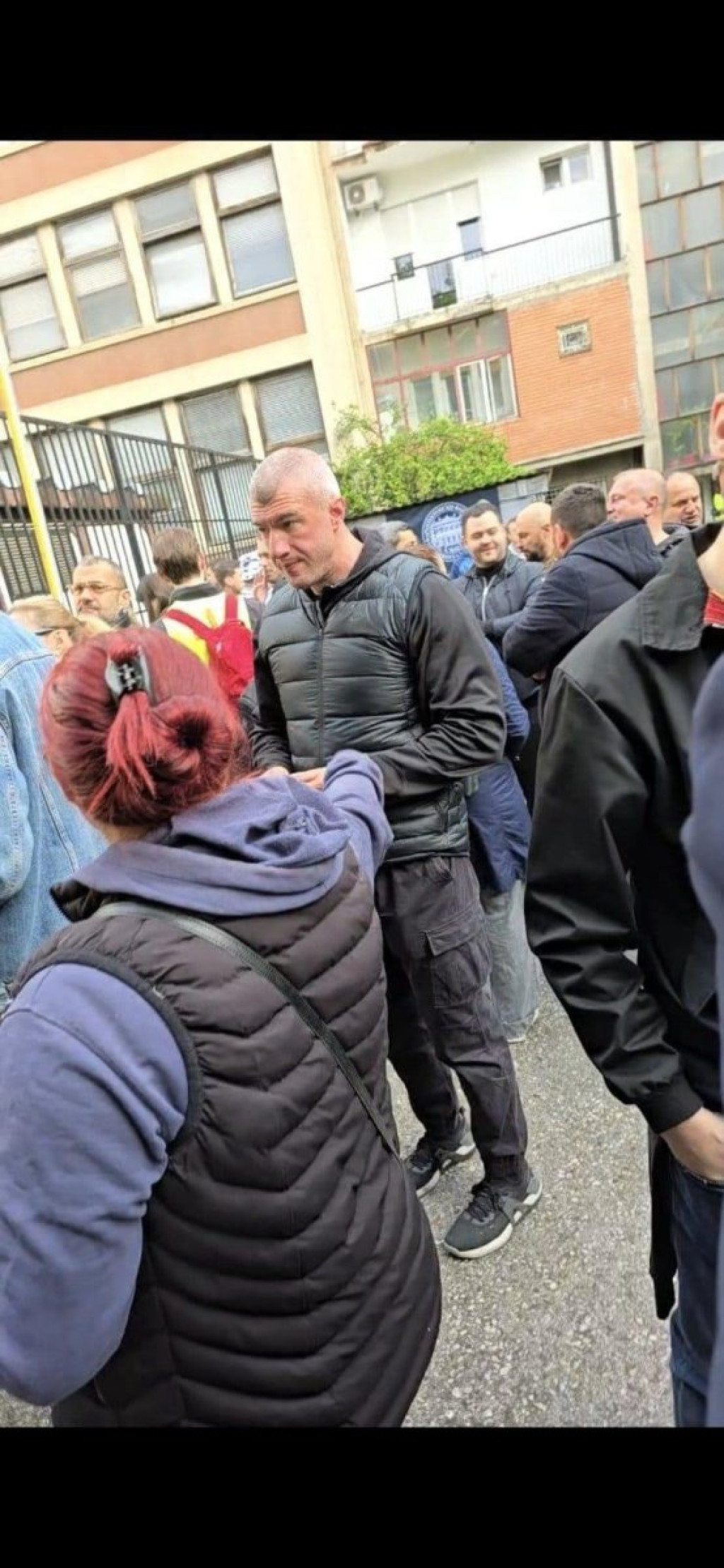 Na protestu su se ovog jutra pojavili i neki "lideri" blokadera, među kojima i osvedočeni nasilnik Miša Bačulov, zvani Ronin, propali političar Goran Ješić i Bora Novaković, poznatiji kao Solunac.