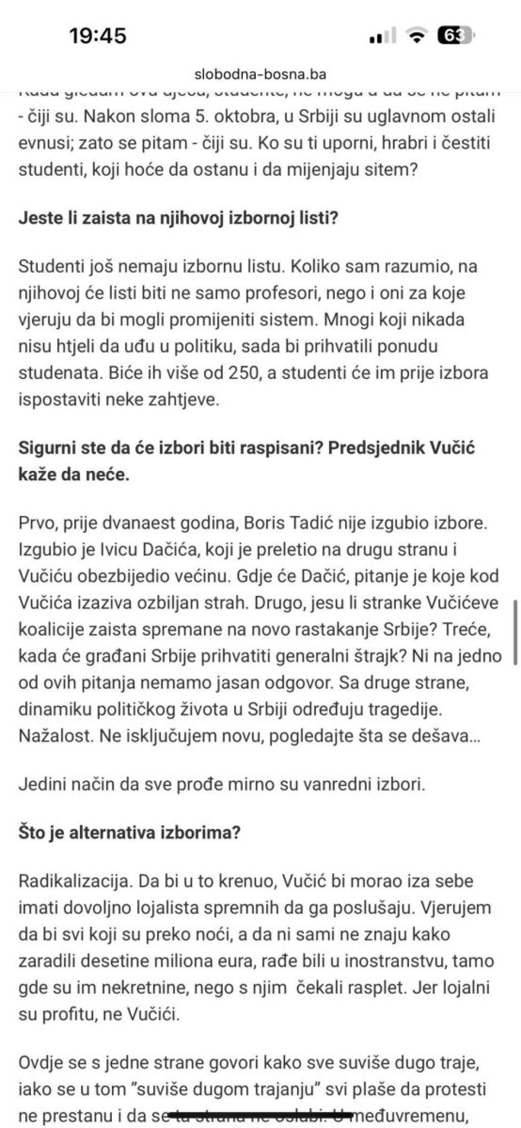 - Radikalizacija. Da bi u to krenuo, Vučić bi morao iza sebe imati dovoljno lojalista spremnih da ga poslušaju. Verujem da bi svi koji su preko noći, a da ni sami ne znaju kako zaradili desetine miliona eura, rađe bili u inostranstvu, tamo gde su im nekretnine, nego s njim čekali rasplet. Jer lojalni su profitu, ne Vučiću - kaže Prelević na direktno pitanje šta je alternativa izborima.