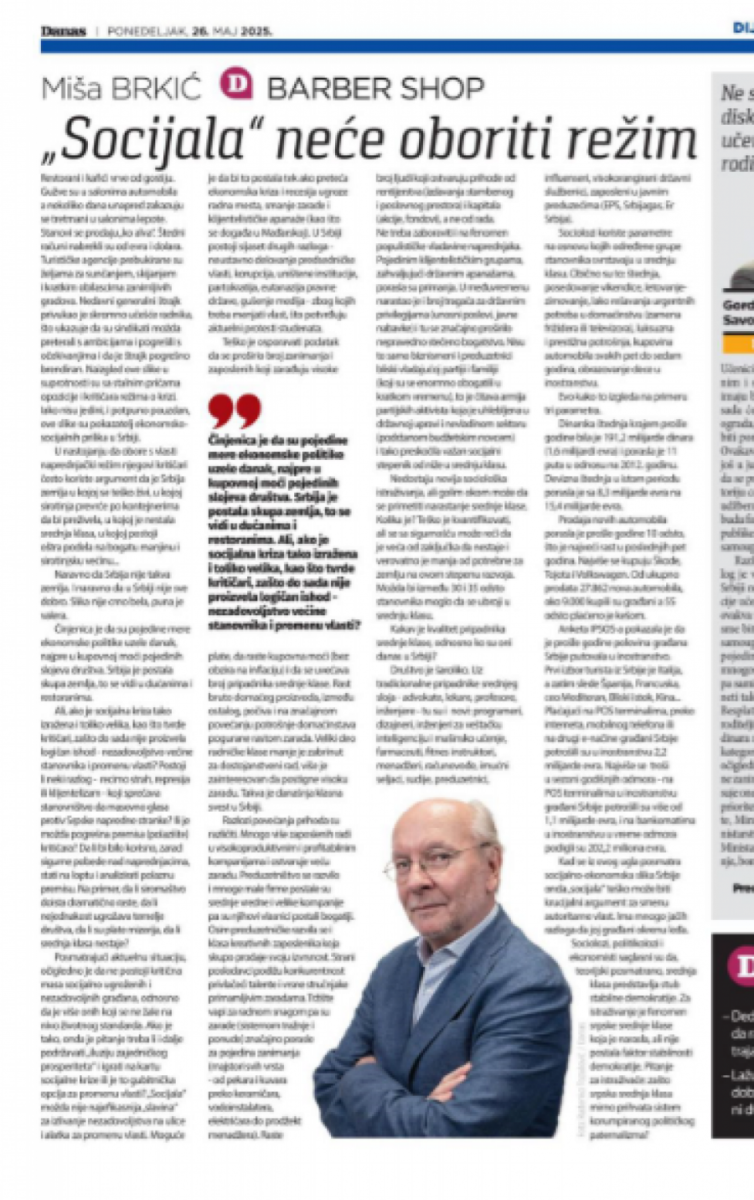 Jako teško je osporiti podatak, poručuje Brkić, da se proširio broj zaposlenih i zanimanja koja zarađuju visoke plate, da bez obzira na inflaciju raste kupovna moć i da se uvećava broj pripadnika srednje klase.