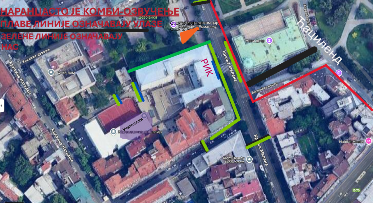 "Poprilično je potrebno da zaista ciljamo na institucije koje se tiču tih izbora i za početak je najbolje početi sa onom koja reguliše moguće nepravilnosti na njima. Na taj način se stavlja naglasak da je naša borba zasnovana na funkcionisanju institucija i da je RIK jedna od njih koja je svoju efektivnost izgubila zbog dominacije SNS-a. Isto tako, važno je odrediti cilj blokade koji će biti objavljen na nalozima studenata. Kako je ovo višečasovna blokada, jedino može služiti kao pritisna tačka, gde bi rezultat bio dalje urušavanje koruptivne mreže koju ljudi nisu do sad primetili ili barem imali dodir sa njom. Stoga, biće potrebno osiguranje adekvatne opreme koja će služiti studentima, koji će biti izabrani od strane svojih RGM-a da čitaju zapisane skandale. Kako je namera da ova blokada započne u kasnijim jutarnjim časovima, zahtevalo bi se od redara da prostor koji se tu nalazi zauzmu i osiguraju postavljanje. Naspram da imamo „reč na b“, predlažem da iskoristimo, nalik Ustavnog suda i Dezinformer-a, kombi koji bi sa sobom nosio ozvučenje. Govori bi trebali da ukažu na svaki propust RIK-a na prethodnim izborima i da se ukaže na tendenciju SNS-a da iste sazove kao vanredne. Isto, mediji bi delom, uz nas, bile nadležne za aktivnosti koje bi se tu desile", piše u dokumentu blokadera.