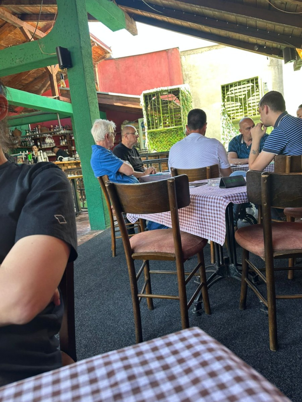 Na fotografijama se vidi grupa muškaraca u opuštenim majicama i farmericama, kako tiho razgovaraju, zbijaju redove i beleže nešto u notesima i telefonima. Naizgled običan prizor ali u realnosti politički štab za rušenje vlasti!