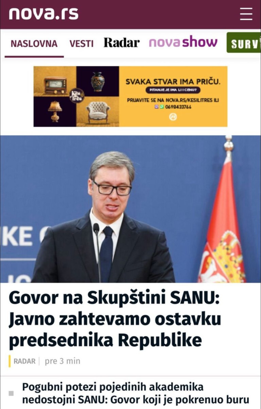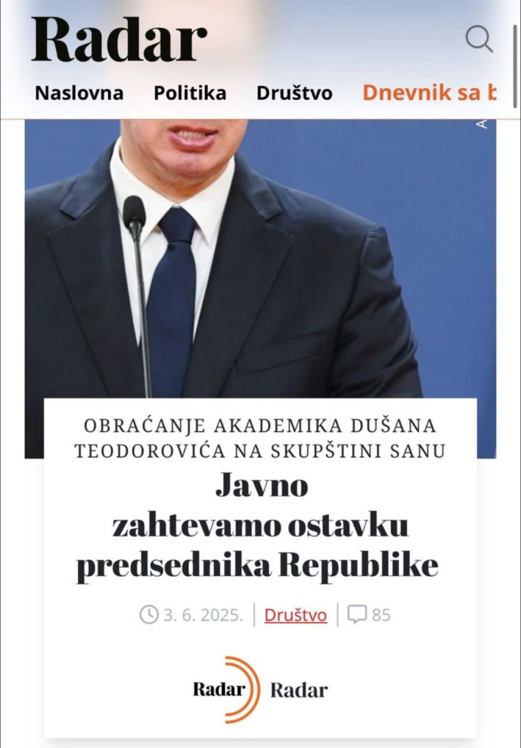 Nije reč ni o kakvom zahtevu iz SANU, već je u pitanju obraćanje jedne nervozne osobe, Dušana Teodorovića, kome smeta sve živo u Srbiji, od spomenika Stefanu Nemanji, do razvoja naše države.