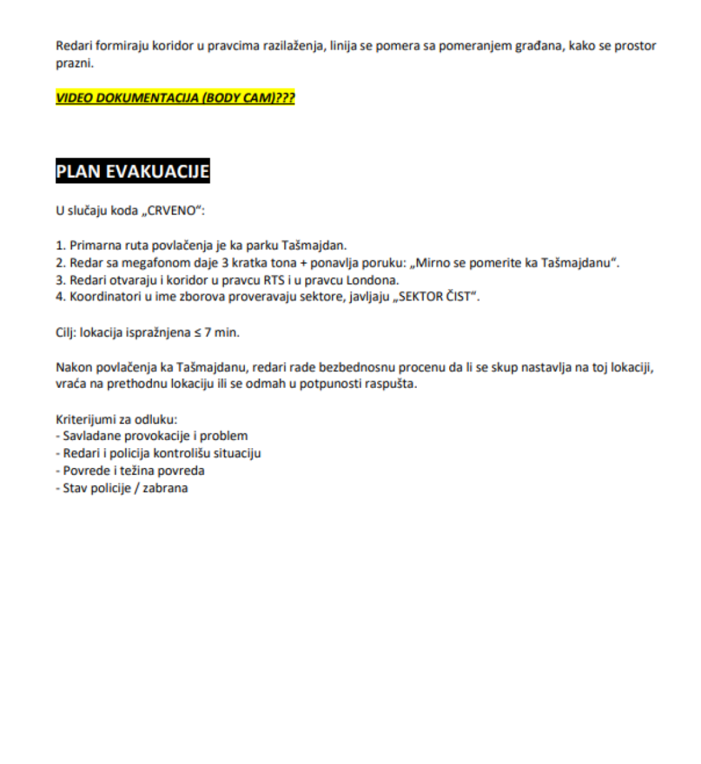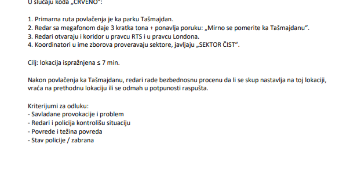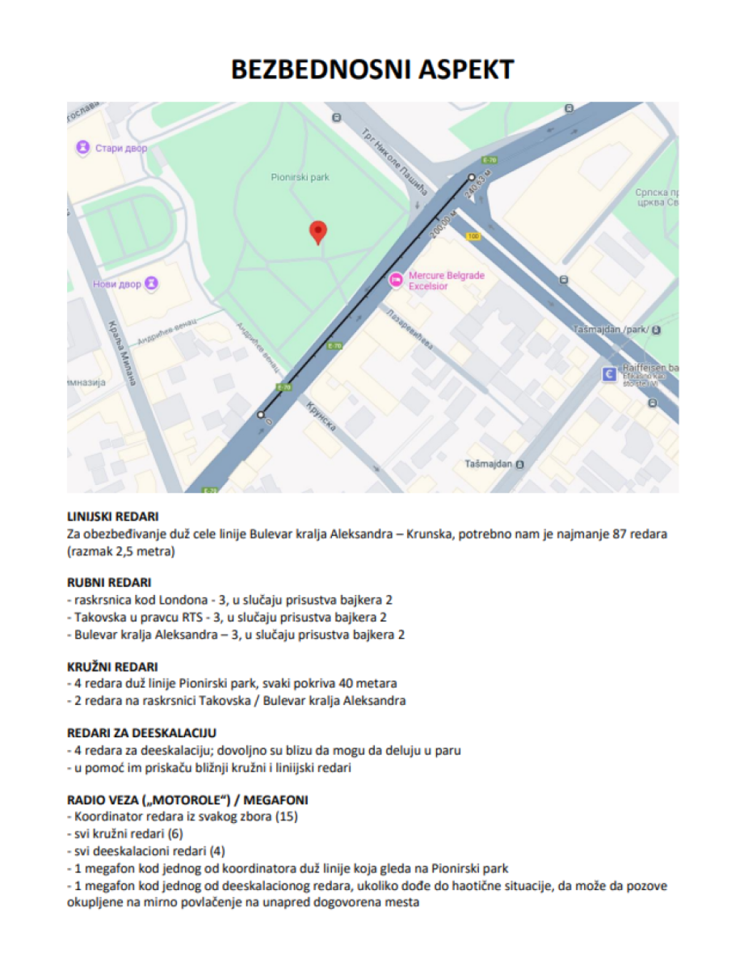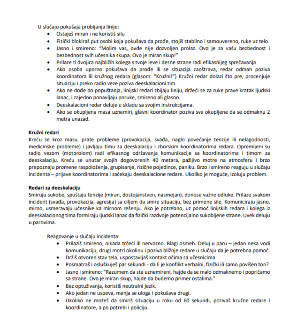 U planu do kog je došao Informer navodi se i gde i kako će biti raspoređeni redari, kako izgleda hijerarhija u bezbednosnom, kao i kako izgleda plan evakuacije.
