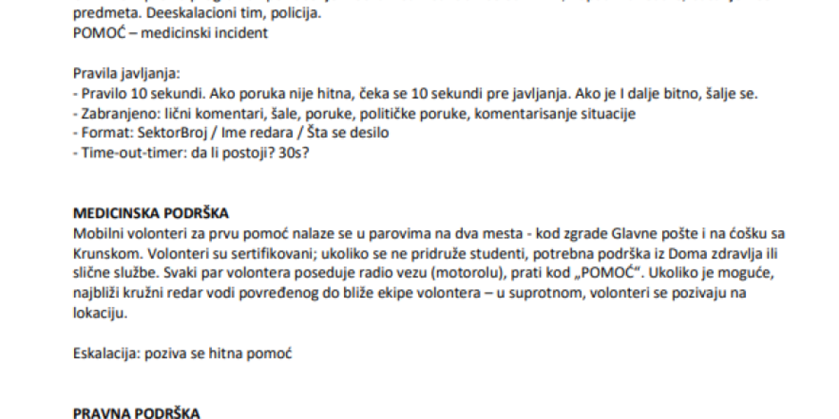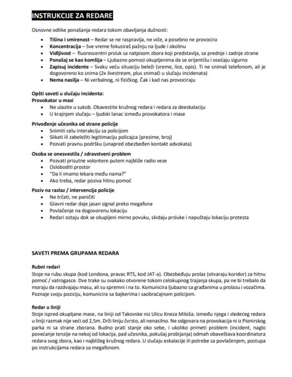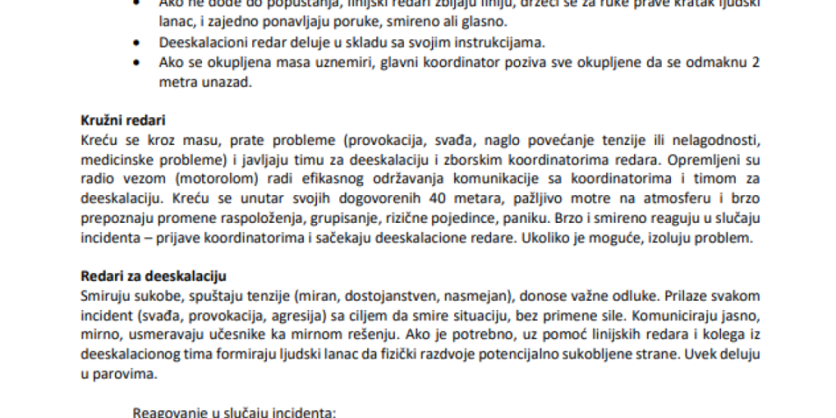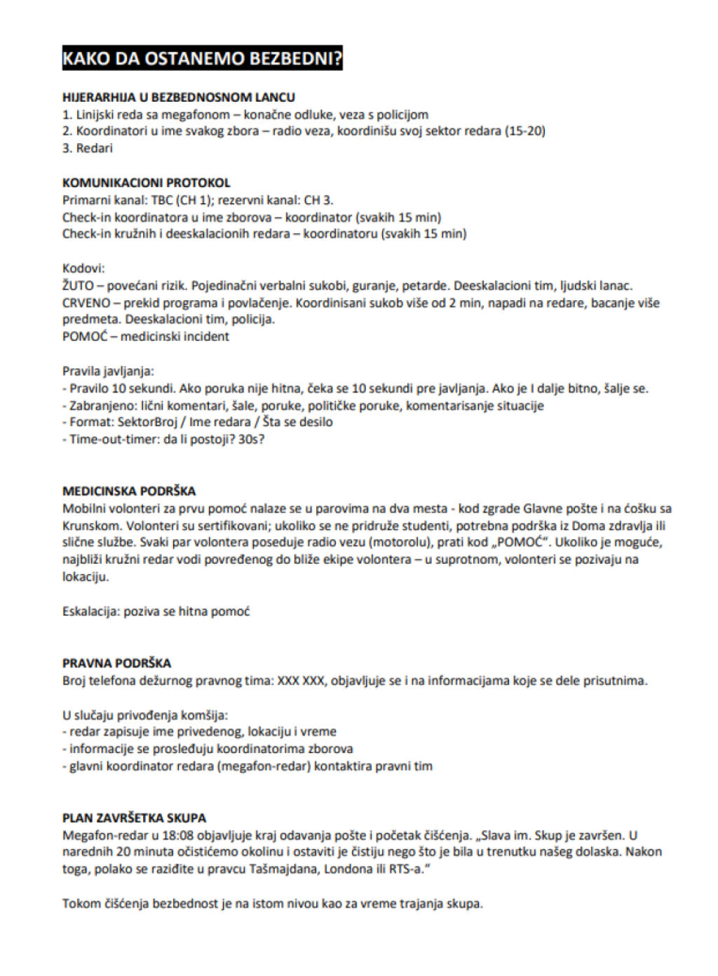 U planu do kog je došao Informer navodi se i gde i kako će biti raspoređeni redari, kako izgleda hijerarhija u bezbednosnom, kao i kako izgleda plan evakuacije.