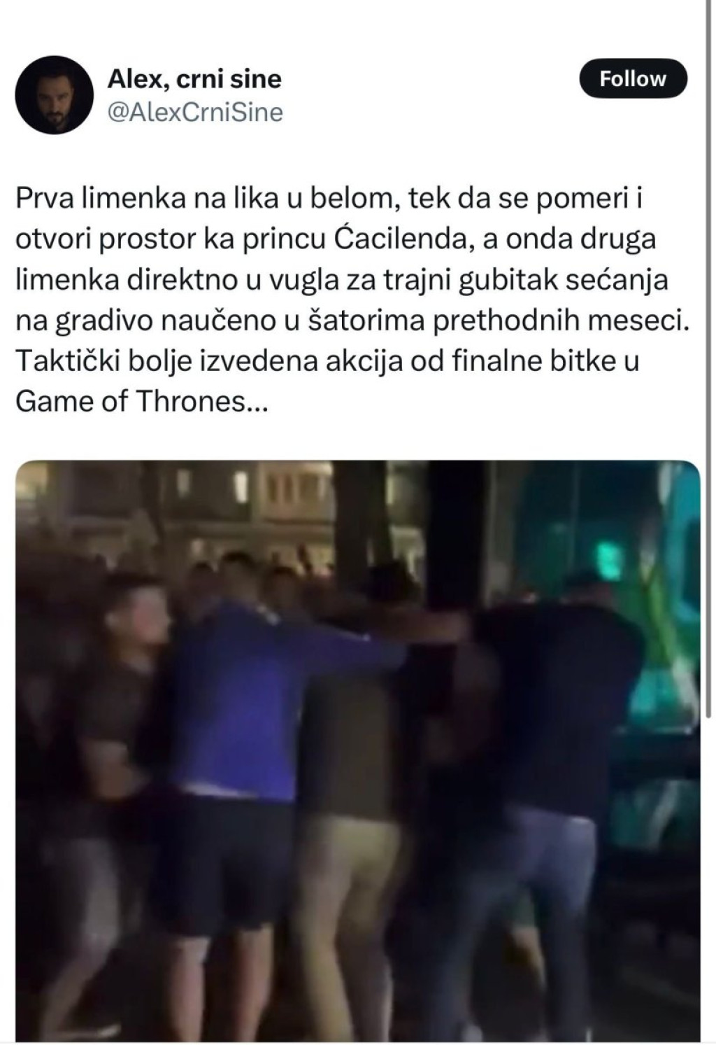 Na društvenim mrežama među blokaderima, kruži video, najverovatnije napravljen veštačkom inteligencijom, koji prikazuje razgovor blokadera o tome kako će zapaliti Vučića.