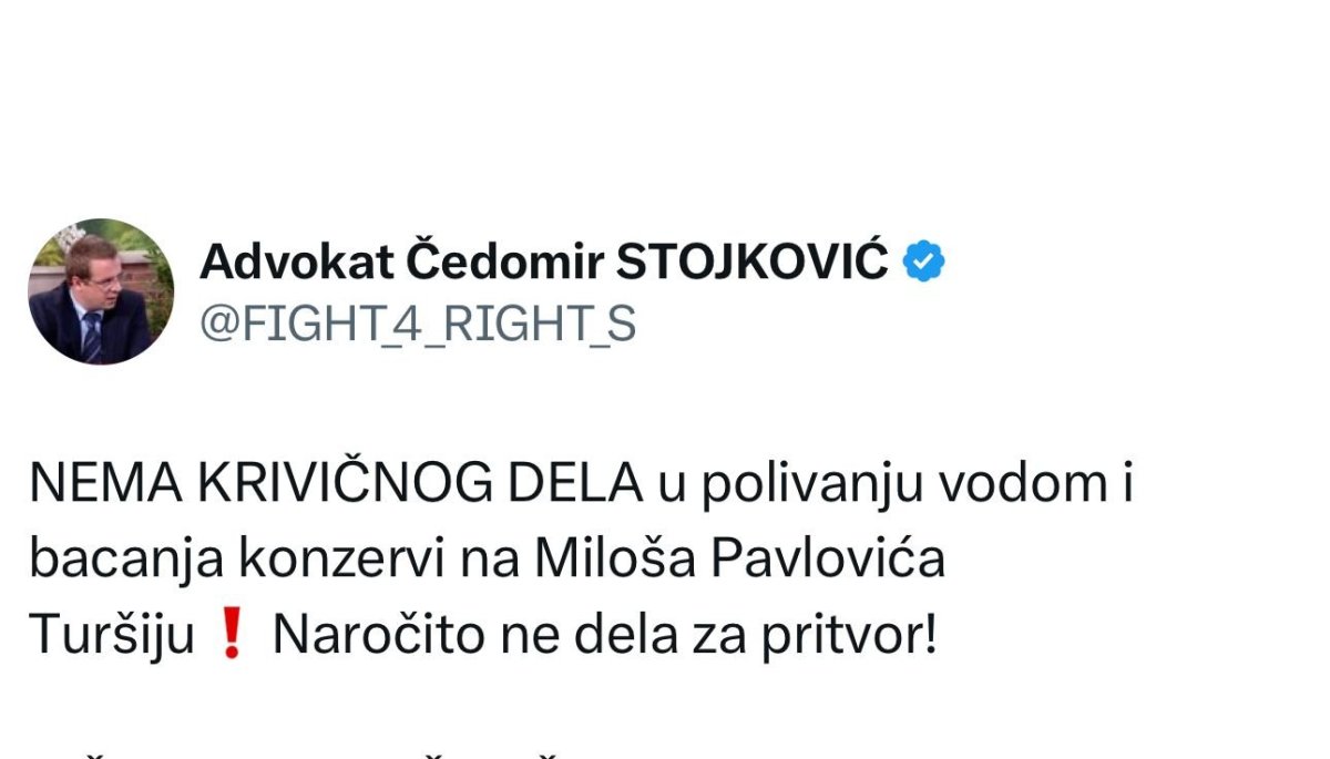 Advokat Čedomir Stojković, poznati NATO lobista u Srbiji, objavio je na društvenim mrežama da nema krivičnog dela u napadu na studenta medicine Miloša Pavlovića.