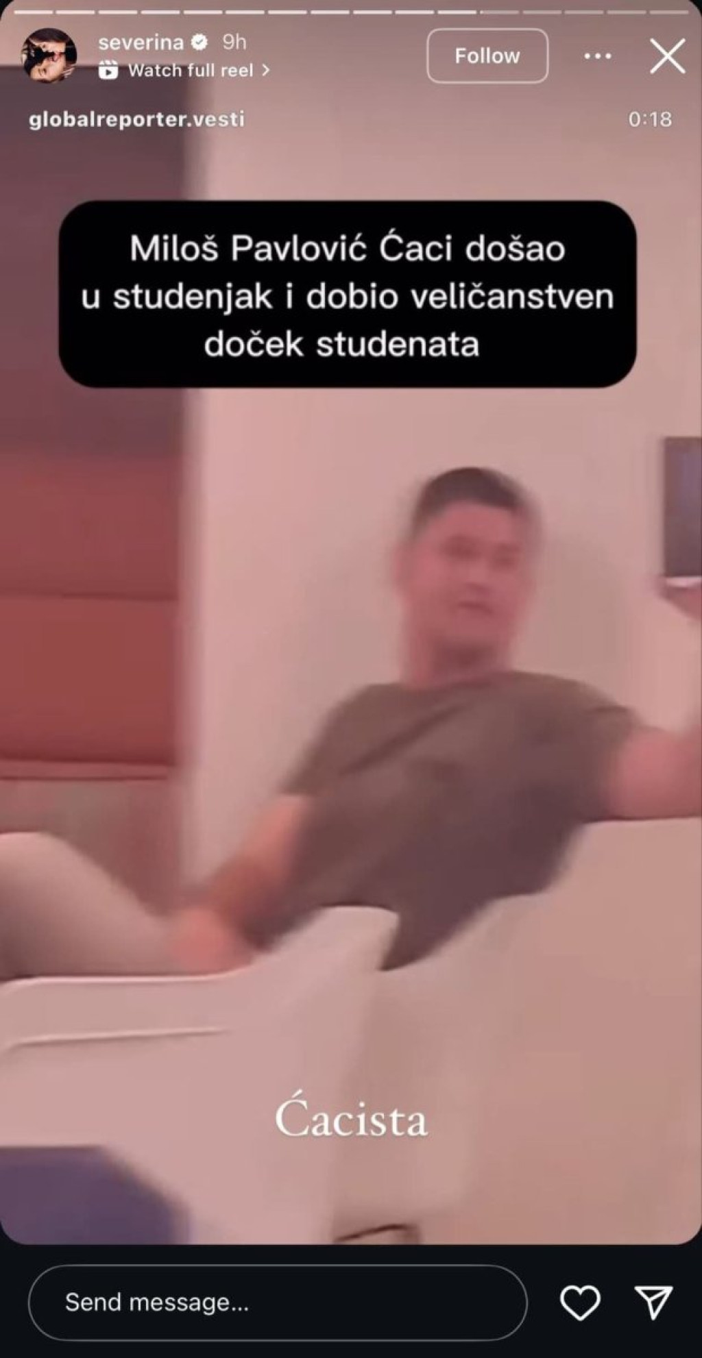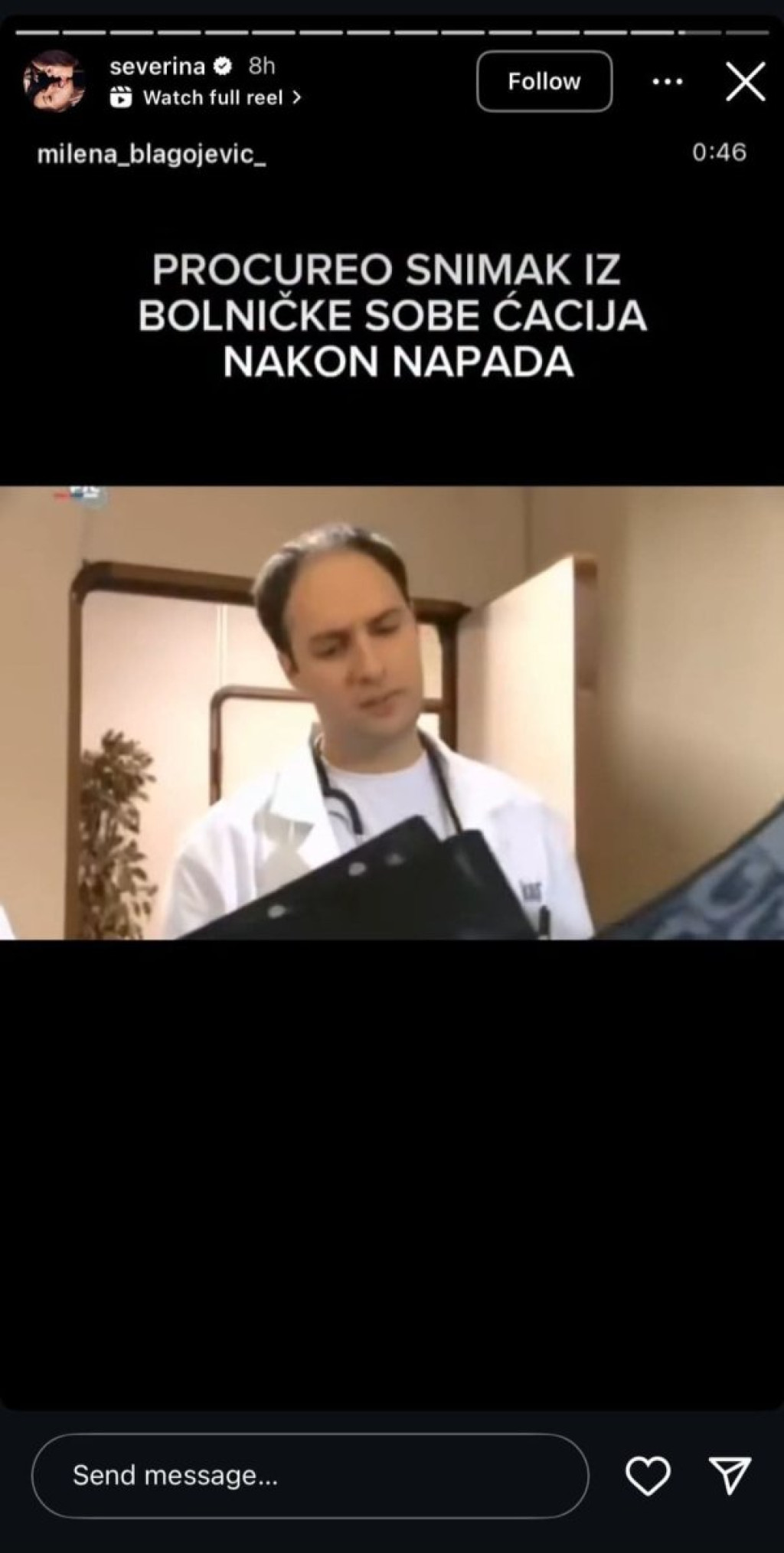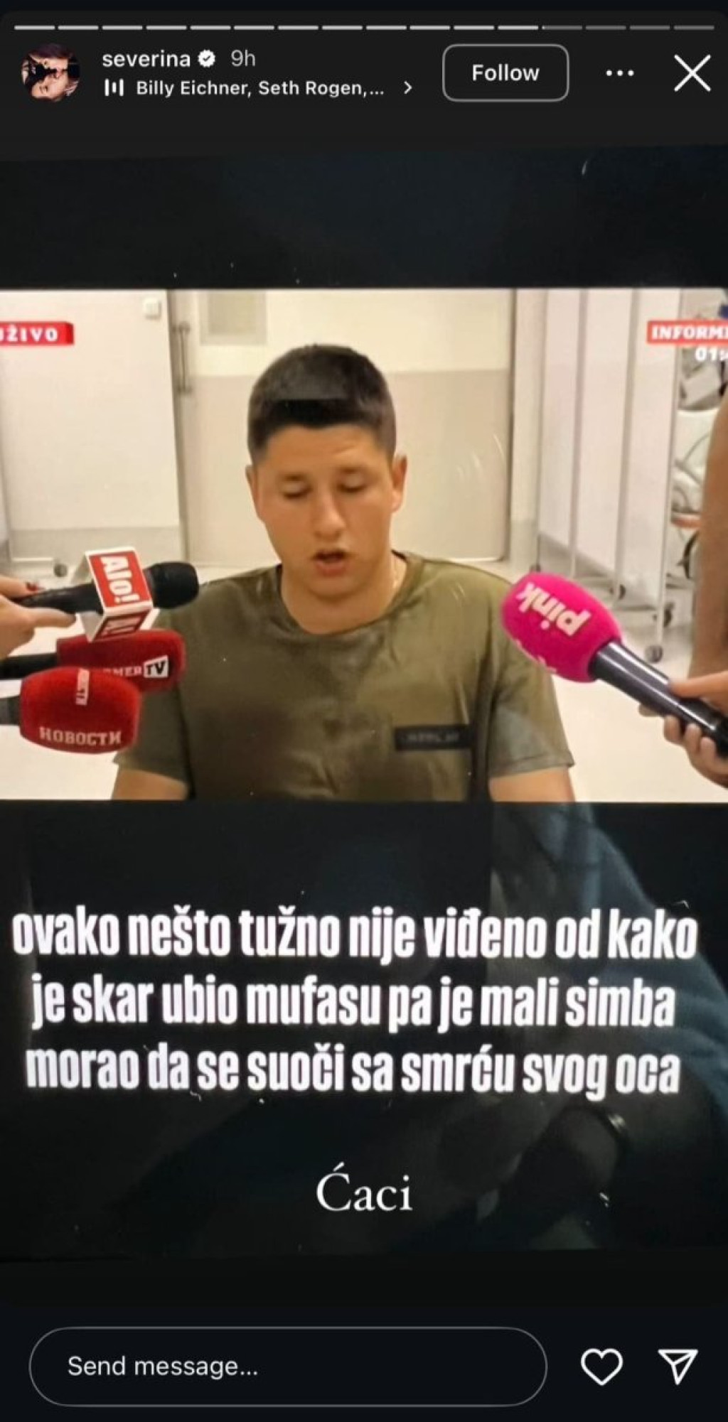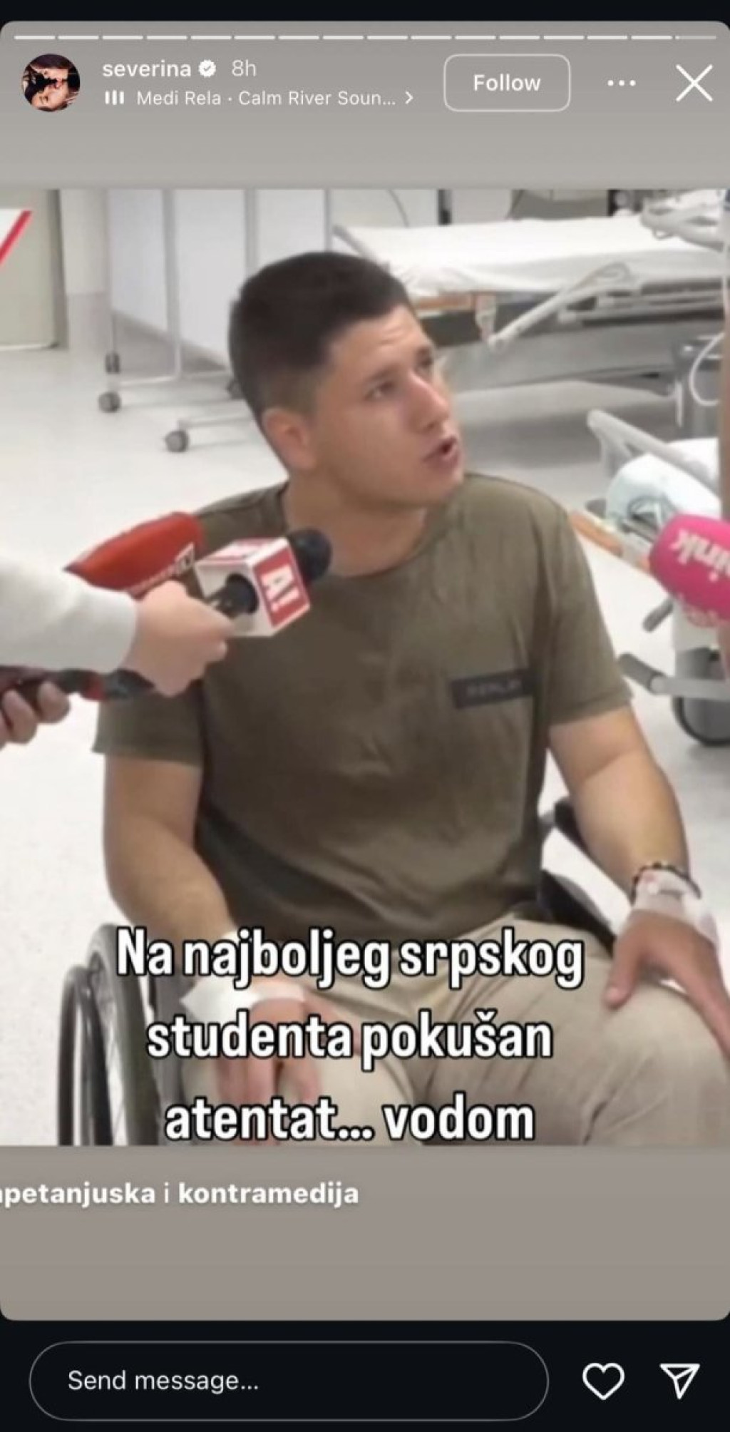 Hrvatska pevačica Severina Vučković objavila je na svom instagram profilu podsmešljive poruke i fotografije u vezi sa napadom na studenta Medicinskog fakulteta Miloša Pavlovića u Studentskom gradu.