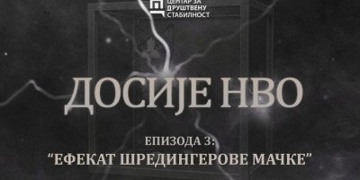 Nakon zapaženog odjeka epizoda Efekat leptira i Efekat crnog labuda, produkcija Centra za društvenu stabilnost predstavlja treću epizodu dokumentarnog serijala Dosije NVO, pod naslovom: Efekat Šredingerove mačke.