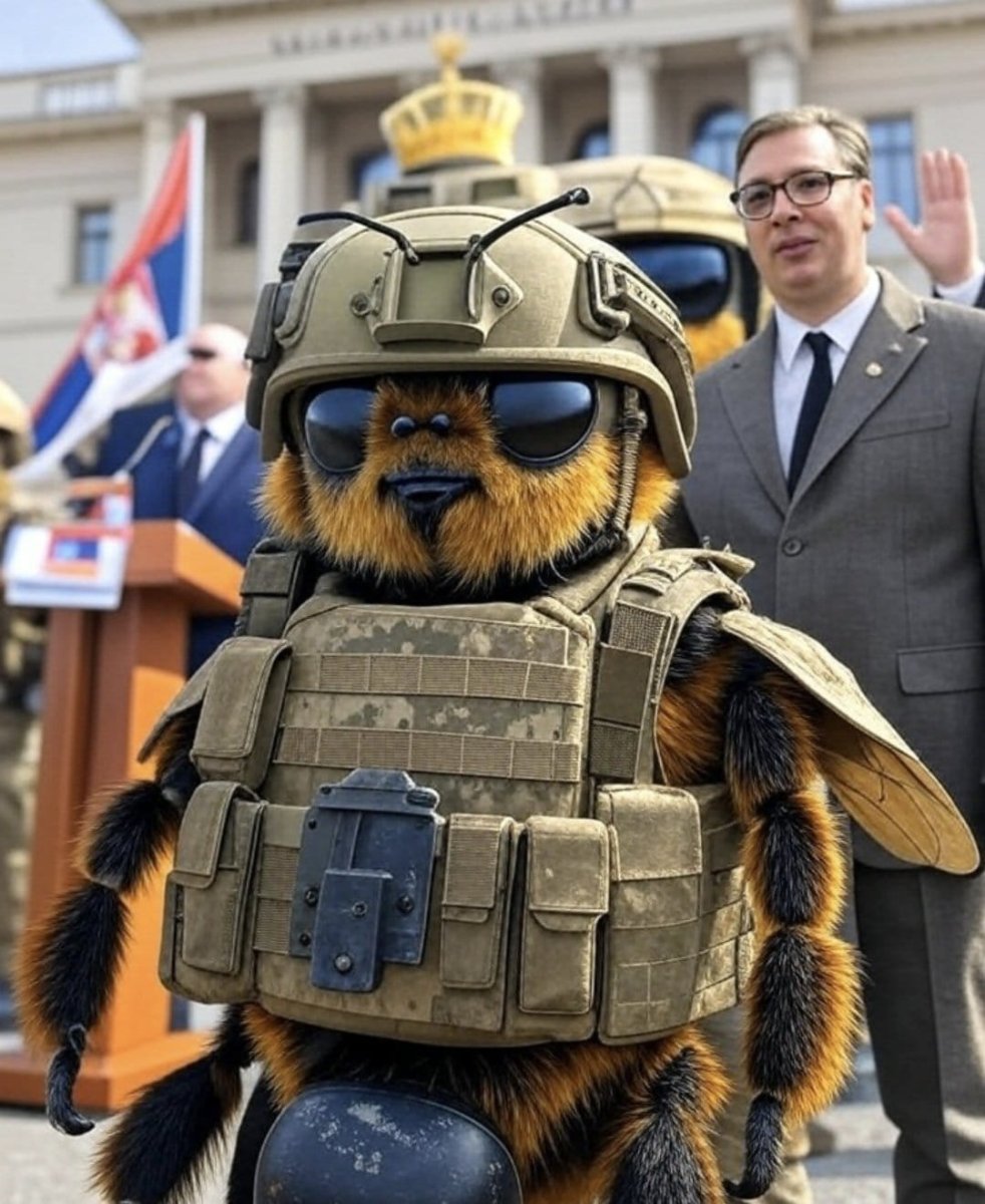 I tako, kada se kroz AI provuku slike onoga kako bi mogla da izgleda "prva linija odbrane" ispred predsednika Aleksandra Vučića, to bi izgledalo ovako: