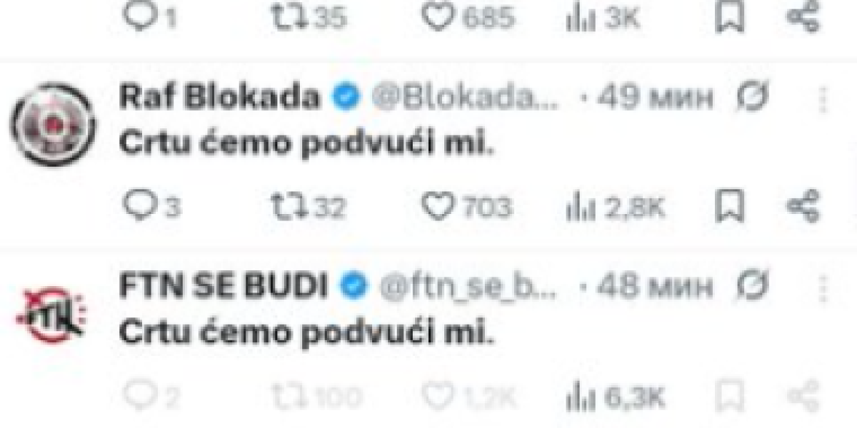 Naime na svim blokaderskim profilima, kako se može videti, ponavlja se jedna fraza "crtu ćemo podvući mi".