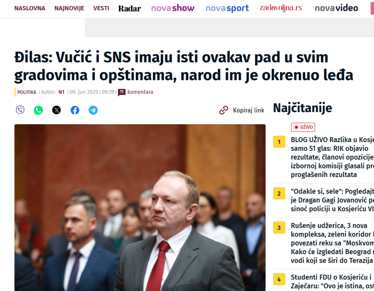 - Vučić i SNS ne mogu više da budu vlast u Srbiji. Iako su izbori u Kosjeriću i Zaječaru održani u apsolutno neregularnim uslovima, njihovi rezultati jasno pokazuju da narod hoće promene. A jasno je da bi da su izborni uslovi fer i pošteni, da su primenjene preporuke ODIHR-a, doživeli potpuni debakl - ocenio je Đilas u pisanoj izjavi, a preneli tajkunski mediji.