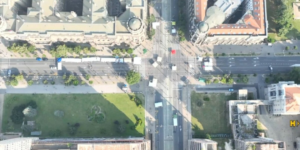 Članovi akademske zajednice, studenti u blokadi i građani koji ih podržavaju u ponedeljak su postavili šatore i ogradu sa svih strana raskrsnice, a saobraćaj je i dalje obustavljen.